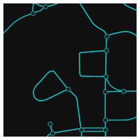 fig, ax = ox.plot_graph(Gc, figsize=(5, 5), bbox=bbox, edge_linewidth=2, edge_color='c',