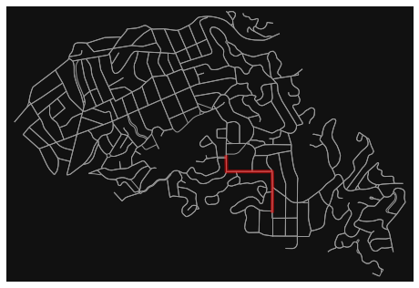 fig, ax = ox.plot_graph_route(G, route1, orig_dest_size=0, node_size=0)