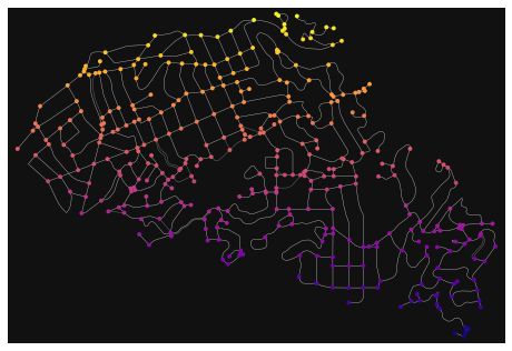 nc = ox.plot.get_node_colors_by_attr(G, attr='y', cmap='plasma')